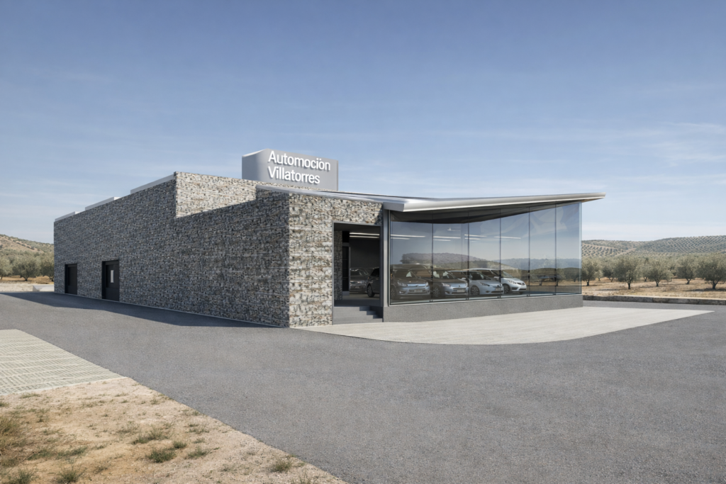 En COS Arquitectos , desarrollamos en 2017 el Proyecto de Actuación Taller Villatorres , transformando el exclusivo taller de coches existente en la nueva sede Automoción Villatorres en Villargordo (Jaén) mediante una ampliación estratégica que incorpora nuevos servicios y espacios comerciales.